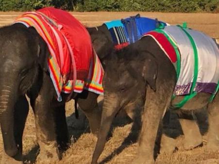Creatures in Thailand, Myanmar, Laos and Cambodia – countries known for their tropical climates - have been forced to don the woollen garments, which were created by volunteers from the Blankets for Baby Rhinos charity.
