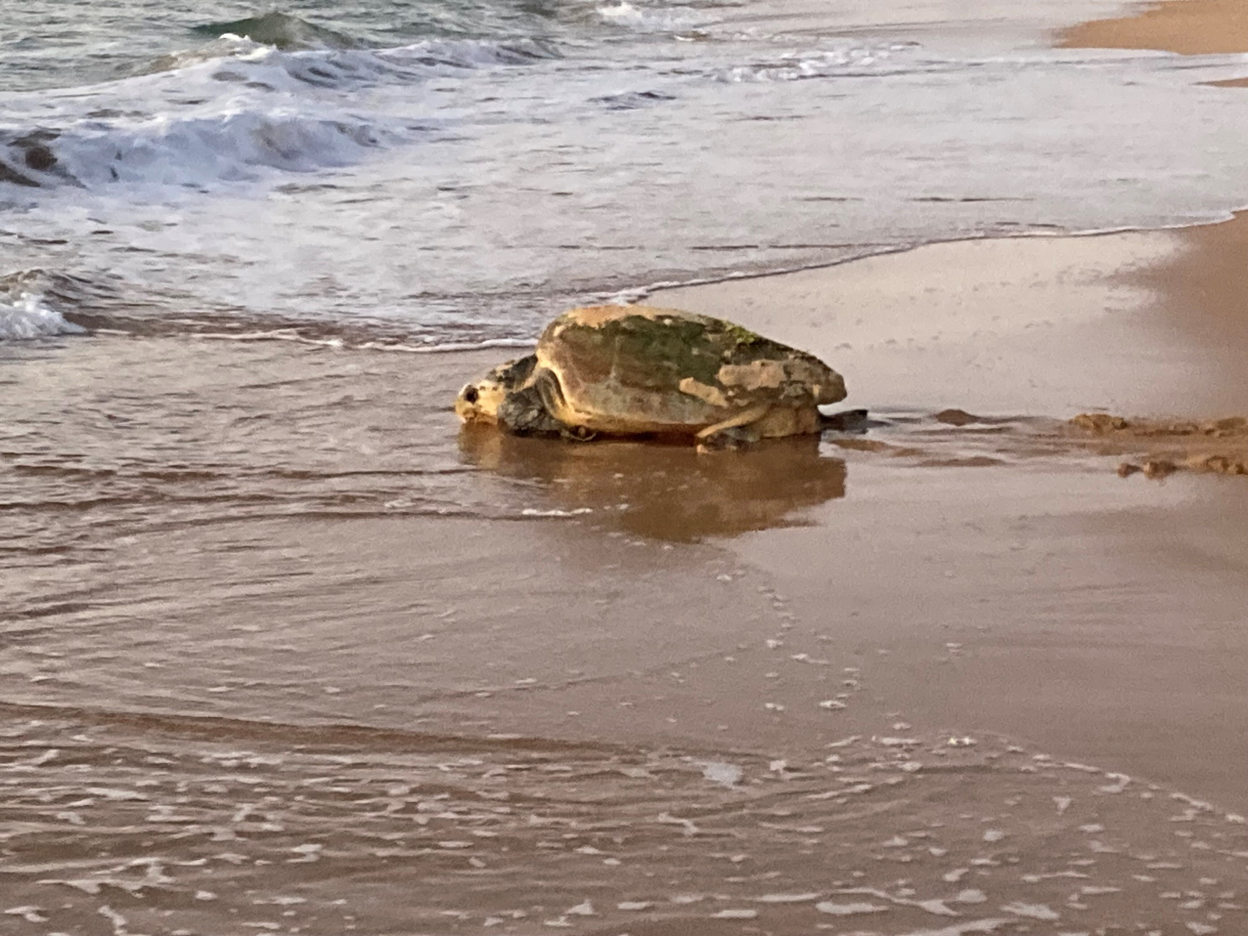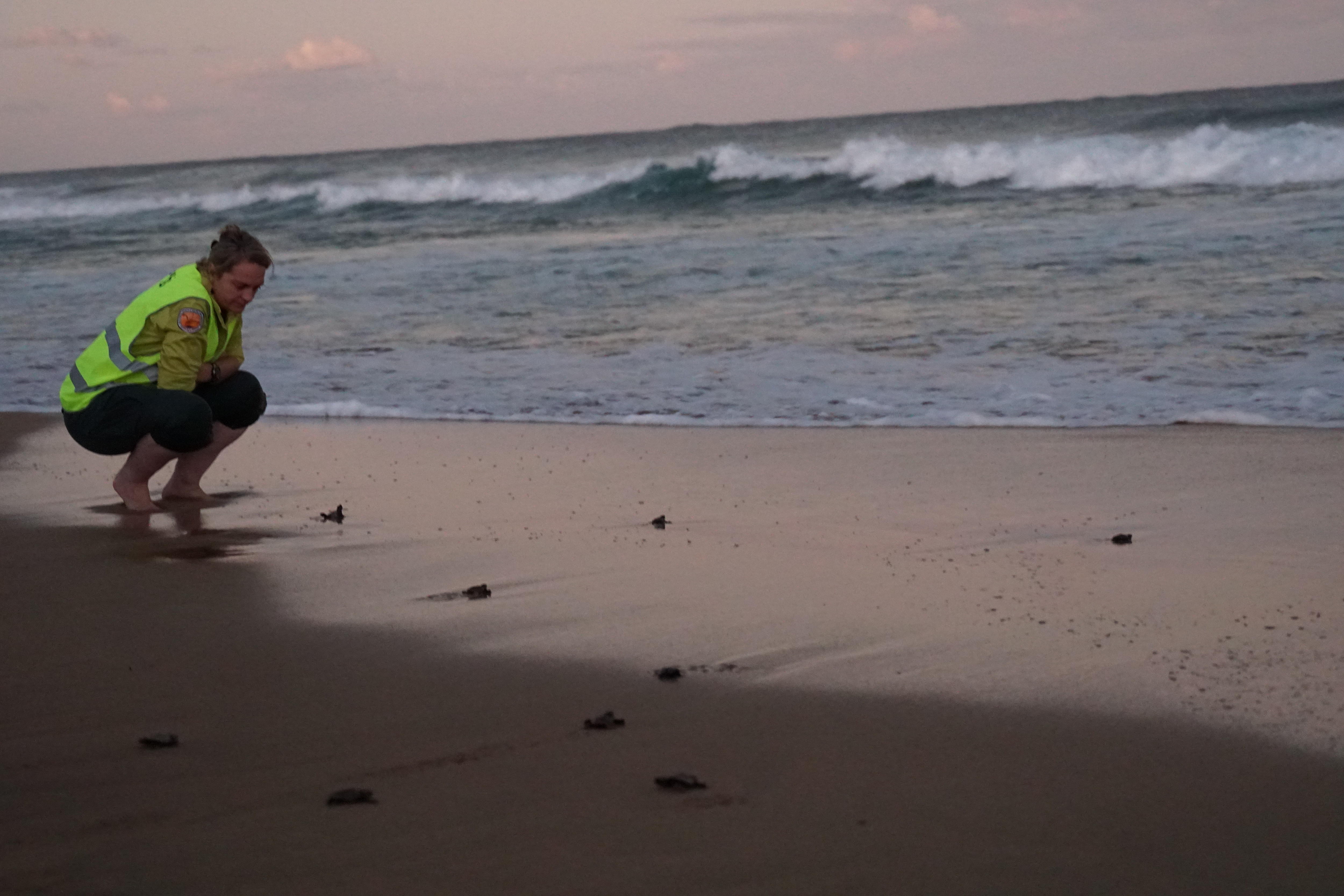 They were invited down to the beach to watch the baby turtles released.