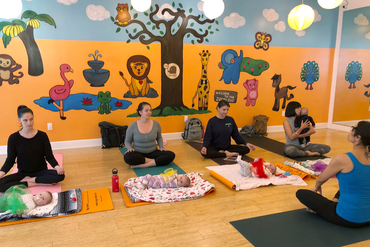 At baby yoga classes, mothers incorporate their newborns into their routines, picking them as additional weights for a squat or side lunge, or kissing them as they swoop down for a sun salutation.