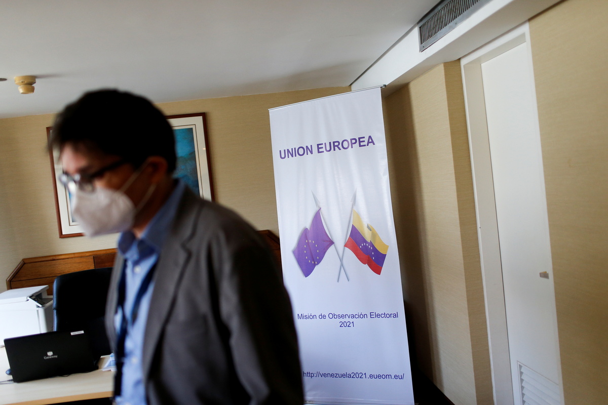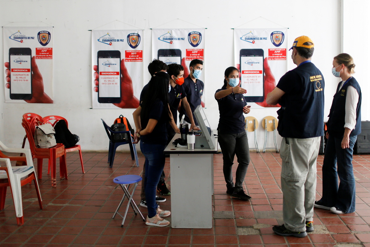 CARACAS/BARQUISIMETO, Venezuela - Dressed in dark blue vests bearing the logo of the European Union, two election observers toured voting sites ahead of Sunday's election in Venezuela's capital Caracas, part of their first mission to the South American country in 15 years.