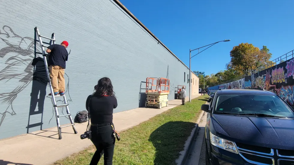 He remembers growing up in Back of the Yards, seeing graffiti and sketching in his notebooks, and says he wants kids growing up around there to be inspired by the art.