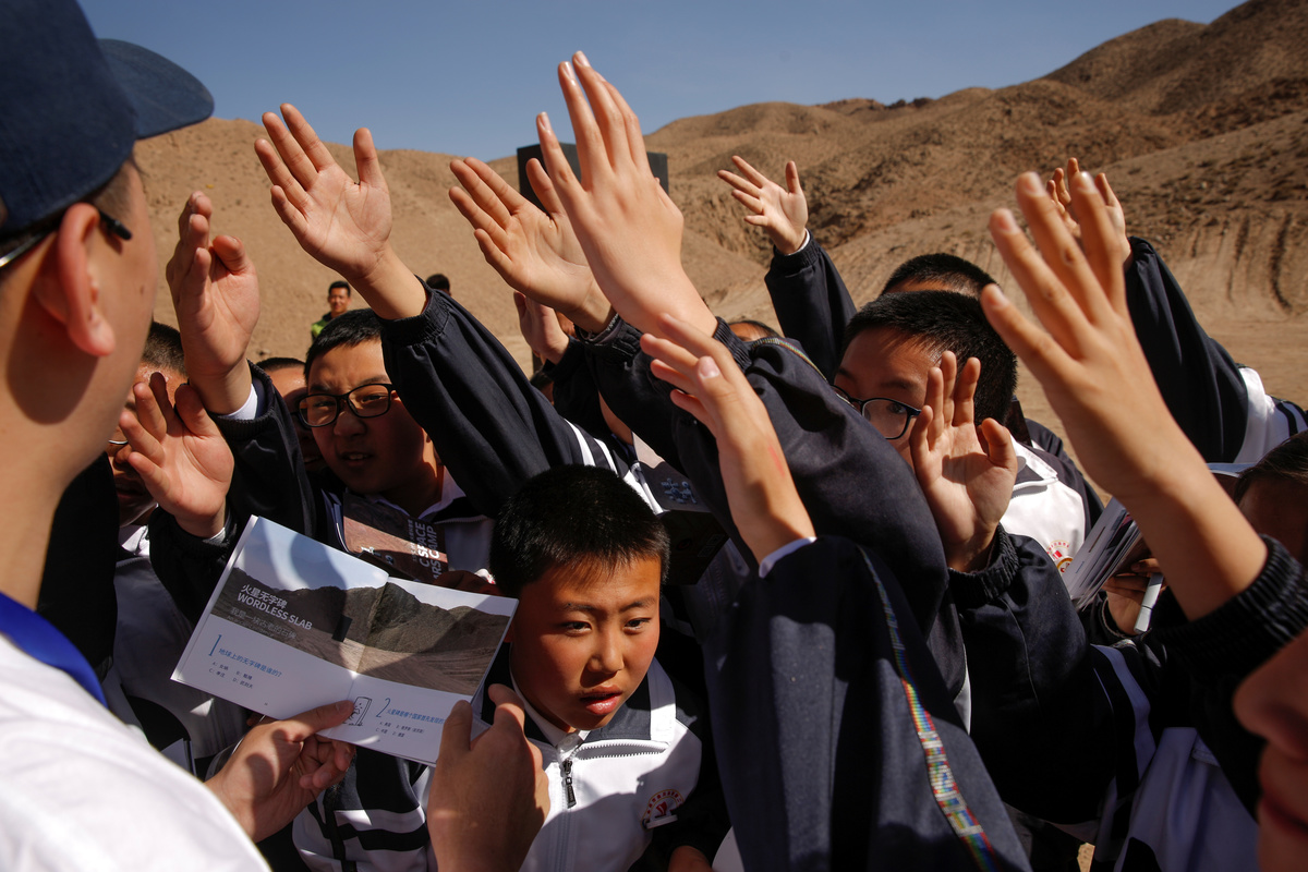 "I am very excited to be here," said a 13-year-old student from Jinchang. "We saw the monolith, a crater and a cave. It's better than the Mars that I had imagined."