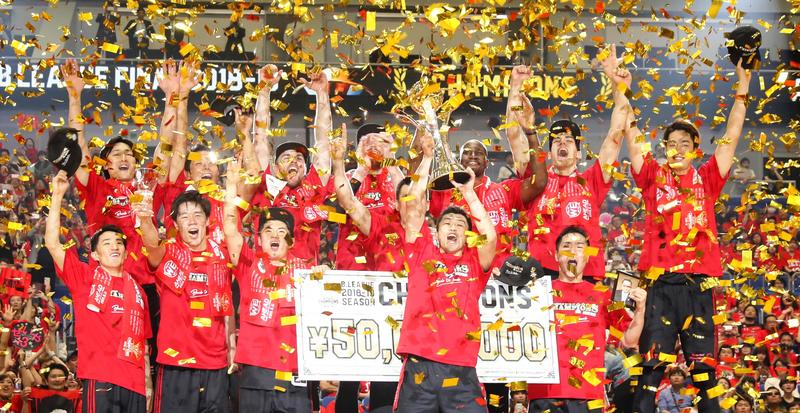 The Alvark Tokyo celebrate their 71-67 victory over the Chiba Jets in the B.League Championship final on Saturday at Yokohama Arena -- a repeat of last season's championship game. Daiki Tanaka scored 16 points and Yudai Baba, named the game MVP, had 12 points and 12 rebounds for the Alvark, who led by 19 points going into the fourth quarter, but had to hold off a furious comeback by the Jets, who cut the lead to 2 with 27 seconds left. Chiba, which won the All-Japan tournament in January, finished the regular season with a league-best 52-8 record, eight games ahead of the Alvark, who made the playoffs as a wild card. "Being champion of Japan is a huge thing ... To win two in a row is beyond a dream," Tokyo head coach Luka Pavicevic said in a postgame TV interview.