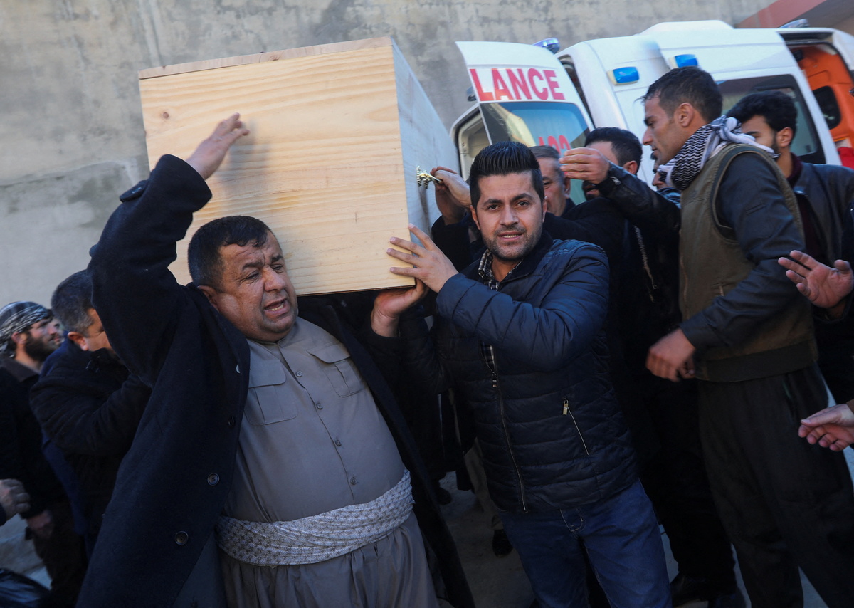 The plane carrying the bodies landed on early Sunday in the airport of Erbil, capital of Iraq's autonomous Kurdish region. Ambulances then took the coffins to the home towns of those who died.