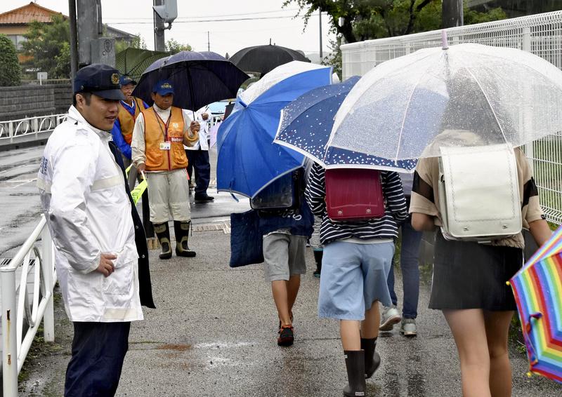 Schoolchildren in Atsugi, Kanagawa Prefecture, head to school for the first time in five days on Monday, as classes resumed at the 45 elementary and junior high schools in the city and the neighboring town of Aikawa in the prefecture one day after the arrest of fugitive Makoto Kobayashi, 43, who fled after his prison sentence for theft and other charges was finalized.