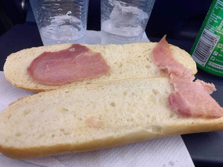 Airplane food doesn’t exactly have the best reputation, but one woman was left stunned after she forked out almost £5 for a particularly sorry-looking sandwich.