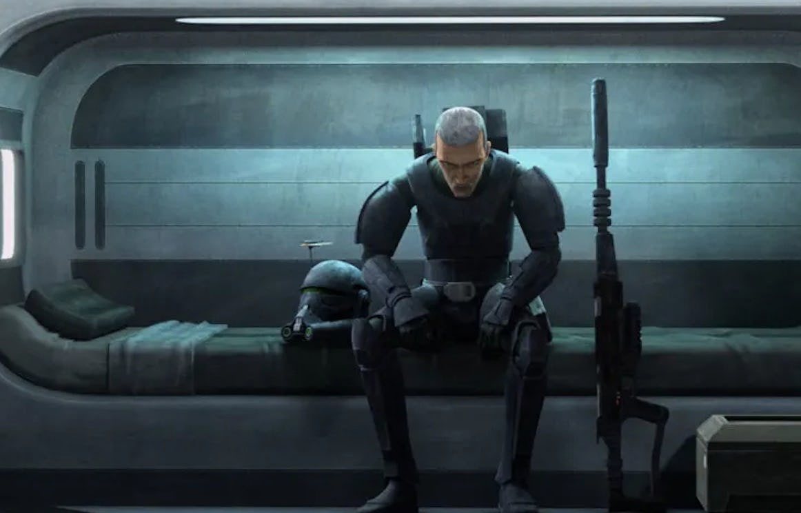 In episode 14 “War-Mantle,” The Bad Batch explores the origins of rogue clone trooper Gregor, who will eventually appear as an old man in the Rebels episode “The Lost Commanders.”