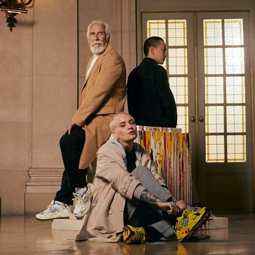 Benito has no issue with pushing the boundaries of his personal wardrobe, but he did aim to please his audience with two sneakers on opposite ends of the color spectrum. One is completely neutral and most dad shoe-like with shades of cream, silver, beige and black. The other is sunshine all around, adopting a Pikachu-esque color scheme of yellow, red, and black.