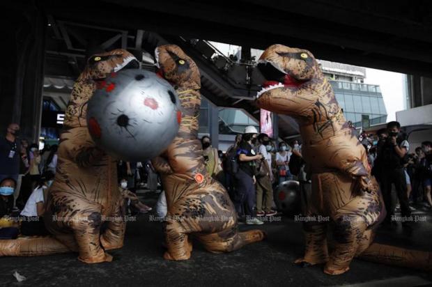 Young “Bad Student” activists gathered on Saturday beneath the Siam BTS skytrain station.