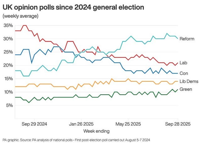 But her party has seen support collapse in opinion polls in recent months, consistently trailing third behind Nigel Farage’s Reform UK and Sir Keir Starmer’s Labour.