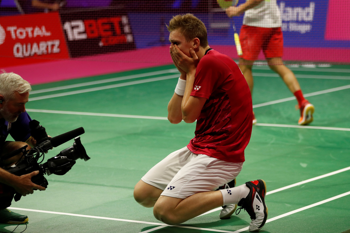 (Reuters) - Viktor Axelsen blanked China's five-times winner Lin Dan 22-20 21-16 to become the third Danish man to win the world championship title and Japan's Nozomi Okuhara beat India's Pusarla Sindhu 21-19 20-22 22-20 in an epic women's final on Sunday.