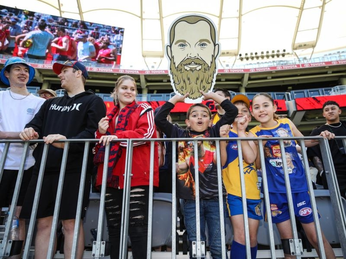 With the traditional grand final parade scrapped, both clubs held open training sessions at Optus Stadium on Friday to give fans the chance to see their heroes up close.