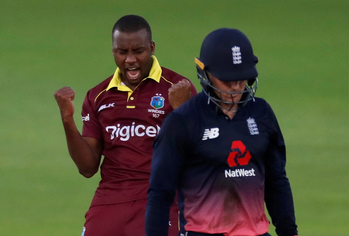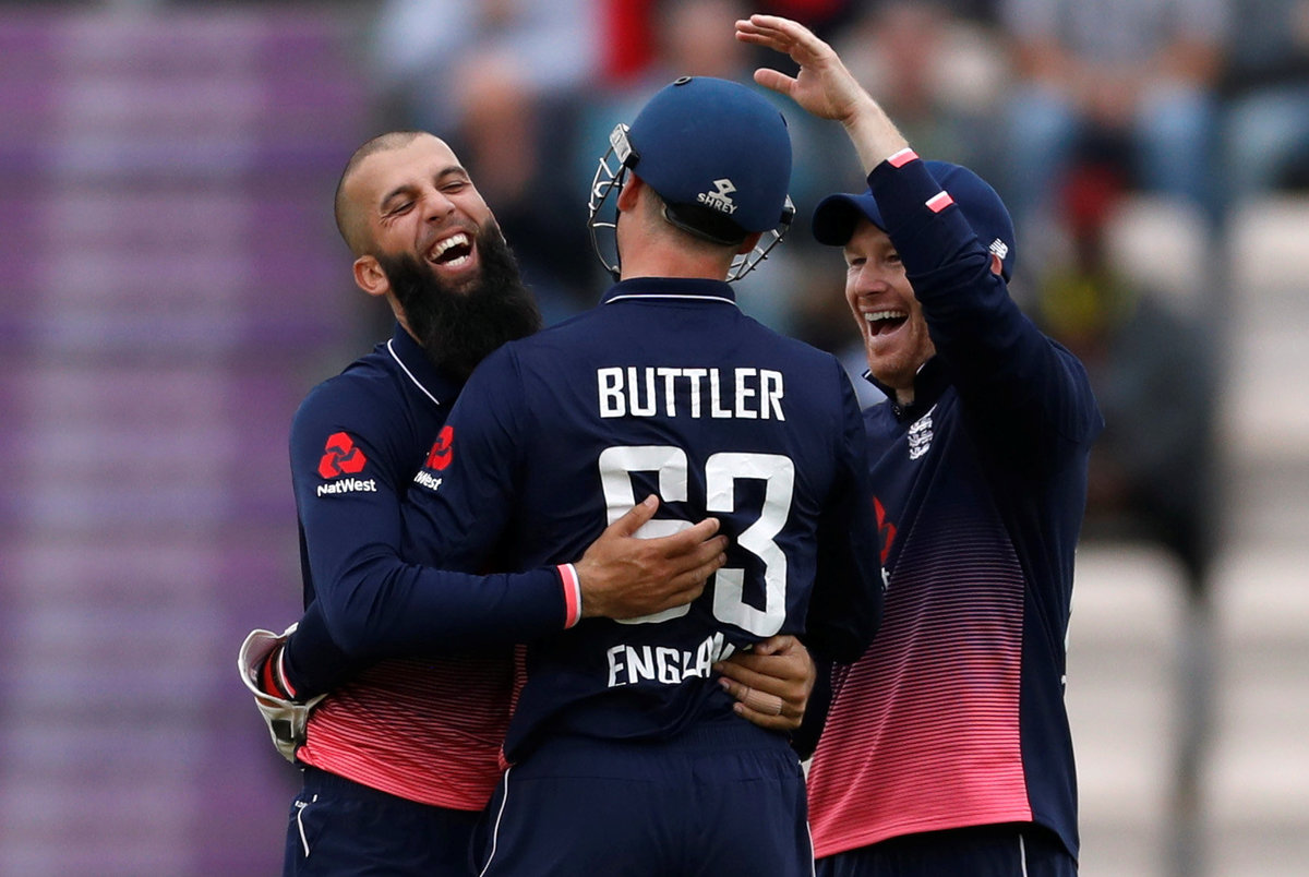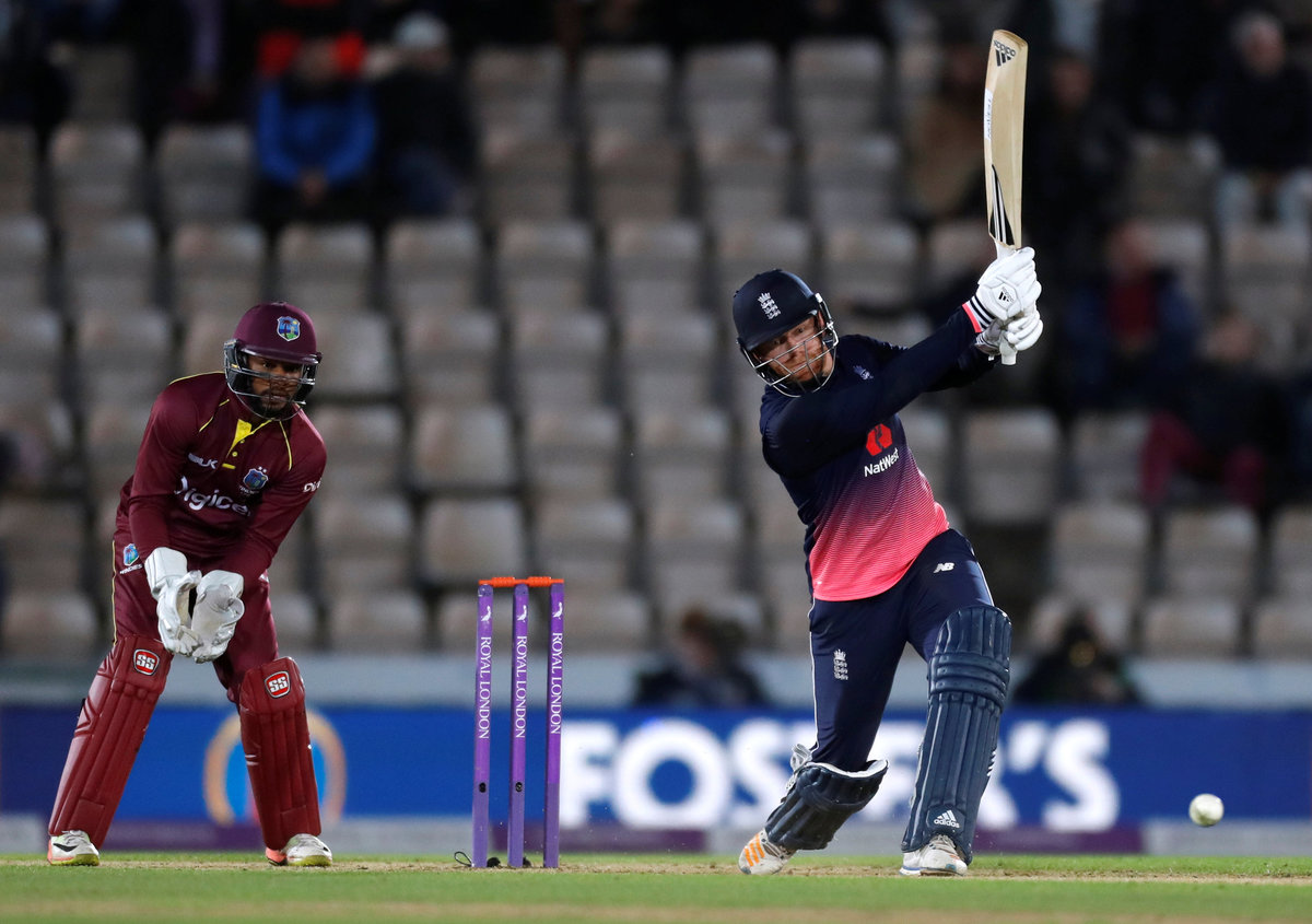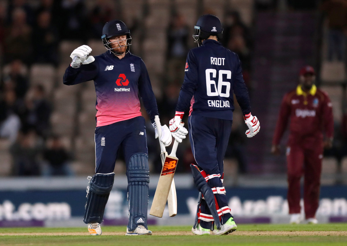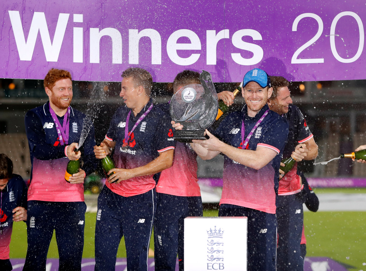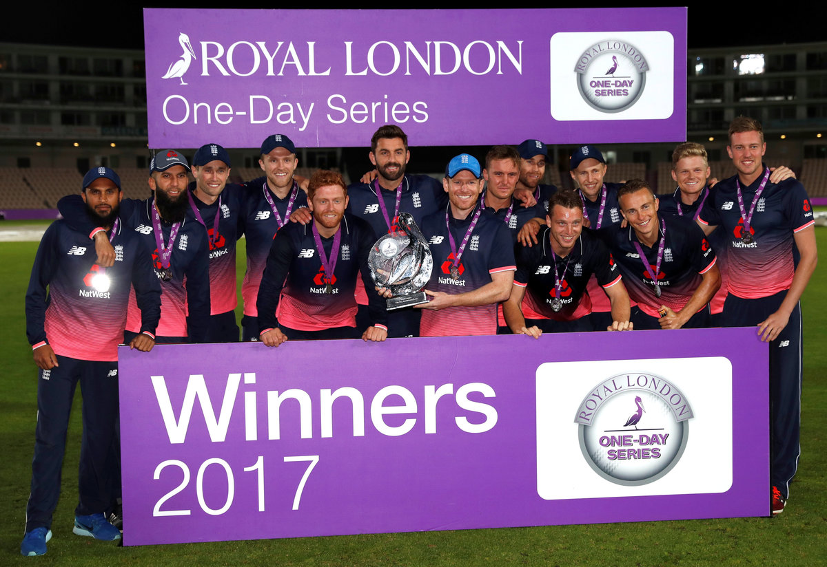 Cricket - England vs West Indies - Fifth One Day International - The Rose Bowl, Southampton, Britain - September 29, 2017 England's Eoin Morgan and team mates celebrate their win with the trophy Action Images via Reuters/Paul ChildsCricket - England vs West Indies - Fifth One Day International - The Rose Bowl, Southampton, Britain - September 29, 2017 England's Jonny Bairstow in action Action Images via Reuters/Paul ChildsCricket - England vs West Indies - Fifth One Day International - The Rose Bowl, Southampton, Britain - September 29, 2017 West Indies' Miguel Cummins celebrates the wicket of England's Jason Roy Action Images via Reuters/Paul ChildsCricket - England vs West Indies - Fifth One Day International - The Rose Bowl, Southampton, Britain - September 29, 2017 England's Moeen Ali (L) celebrates the wicket of West Indies' Marlon Samuels with Jos Buttler and Eoin Morgan (R) Action Images via Reuters/Paul ChildsCricket - England vs West Indies - Fifth One Day International - The Rose Bowl, Southampton, Britain - September 29, 2017 England's Jason Roy looks dejected after losing his wicket Action Images via Reuters/Paul ChildsCricket - England vs West Indies - Fifth One Day International - The Rose Bowl, Southampton, Britain - September 29, 2017 England's Jason Roy in action Action Images via Reuters/Paul ChildsCricket - England vs West Indies - Fifth One Day International - The Rose Bowl, Southampton, Britain - September 29, 2017 West Indies' Miguel Cummins celebrates the wicket of England's Jason Roy Action Images via Reuters/Paul ChildsCricket - England vs West Indies - Fifth One Day International - The Rose Bowl, Southampton, Britain - September 29, 2017 West Indies' Miguel Cummins celebrates the wicket of England's Jason Roy Action Images via Reuters/Paul ChildsCricket - England vs West Indies - Fifth One Day International - The Rose Bowl, Southampton, Britain - September 29, 2017 England's Jonny Bairstow celebrates his century Action Images via Reuters/Paul Childs