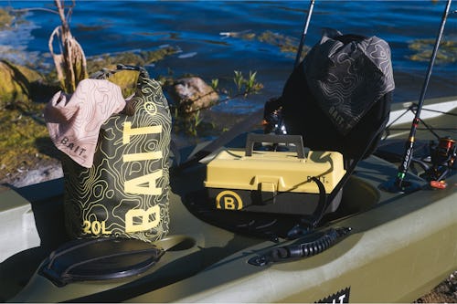 Utility is a driving factor for the collection, as nearly all of the apparel is fitted with extra pocket storage and functional materials. The pants can zip off into shorts, and almost everything is made with a water-resistant material that’ll be helpful when keeping near a body of water. Bandanas appear in khaki and green, while pink and green bucket hats help complete the look. A 20-liter drybag and tacklebox round out the accessories for even more added storage.