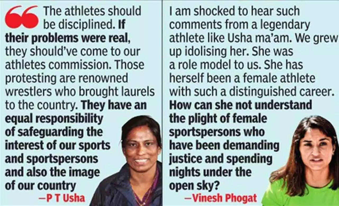Shocked by her comments, the protesting wrestlers, led by Olympians Bajrang Punia, Vinesh Phogat and Sakshi Malik, hit back at Usha, demanding respect for their movement to protect the future generation of female wrestlers from facing sexual harassment.
