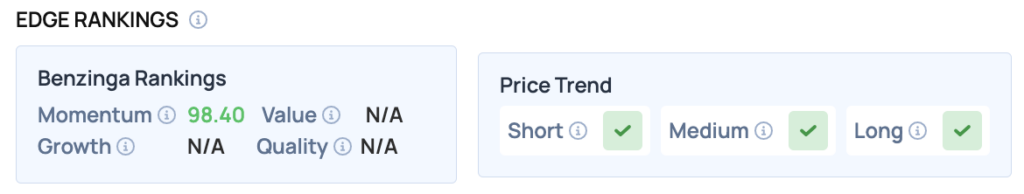 Benzinga Edge Data: Underscoring its positive price action, the stock currently holds a strong Benzinga Edge momentum score of 98.40.