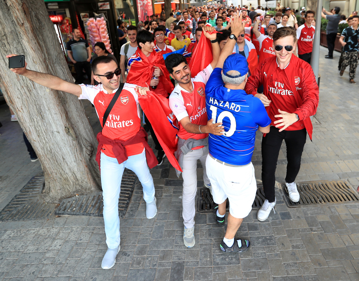 Some fans have journeyed from far beyond Europe to get to the match. Chinese fans wearing Arsenal shirts strolled through central Baku on Tuesday.
