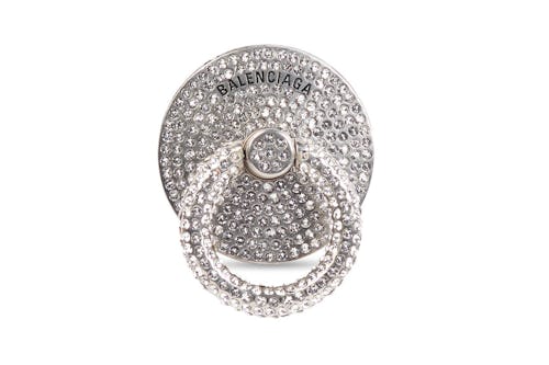 The French luxury house is bringing “glam” to an AirPods case and phone ring holder with a mix of brass and rhinestones. Both accessories are blinged out to the max, continuing designer Demna Gvasalia’s case for their being no splurge too absurd. Balenciaga branding comes engraved, lest the rhinestones not bring enough attention, while the AirPods case comes with a chain for you to wear it like a necklace.