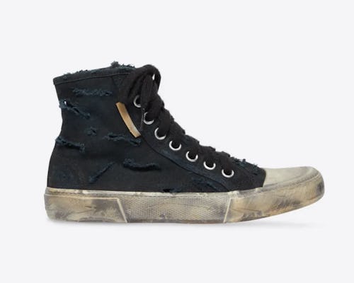 With a silhouette similar to the classic Converse Chuck Taylor, the Balenciaga kicks arrive in black, white, and red shades. Each pair features mild signs of wear, but limited-edition “full destruction” versions of the sneakers arrive with even more extreme distressing including rips and a midsole covered in faux scuffs. The artist Leopold Duchemin put the Paris through the ultimate ringer as part of the campaign for the sneakers, although those downright gnarly shoes are not going up for sale.