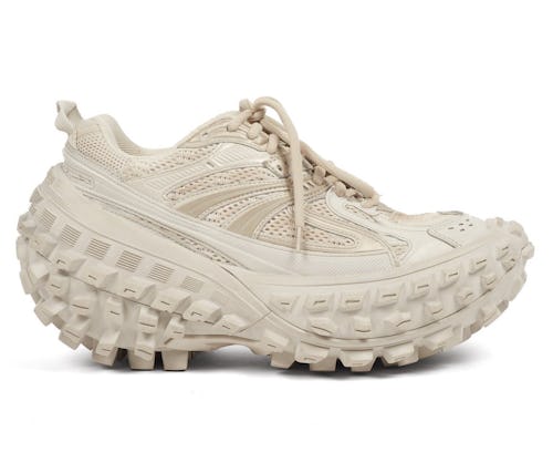 The Triple S and Track sneakers are the primary forebearers of the Defender, although Gvasalia’s tenure at Balenciaga has had no shortage of eye-popping shoes, from several iterations of Crocs to a soccer cleat for everyday wear. But of the luxury house’s recent output, the Defender should have the best chance of becoming Balenciaga’s latest it-sneaker of the moment.