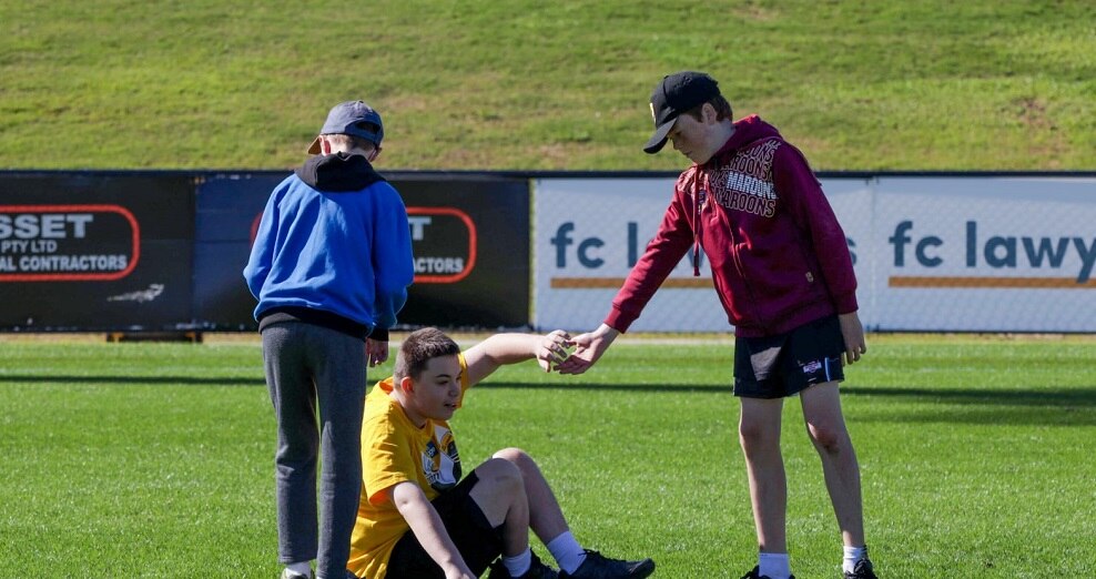 The grade 7 student is also an integral part of the Falcons Footy for Kidz program, which is run for children with disabilities who can't participate in mainstream sport.