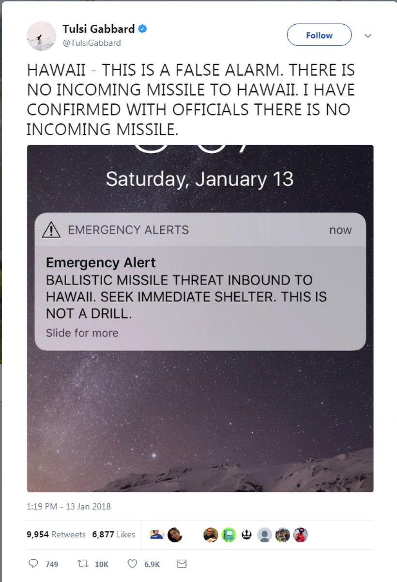 Ige said the alert was sent during a employee shift change at the Hawaii Emergency Management Agency, and that the state had no automated process to get out the word that it was a false alarm. Vern Miyagi, the agency's administrator, called it "human error."