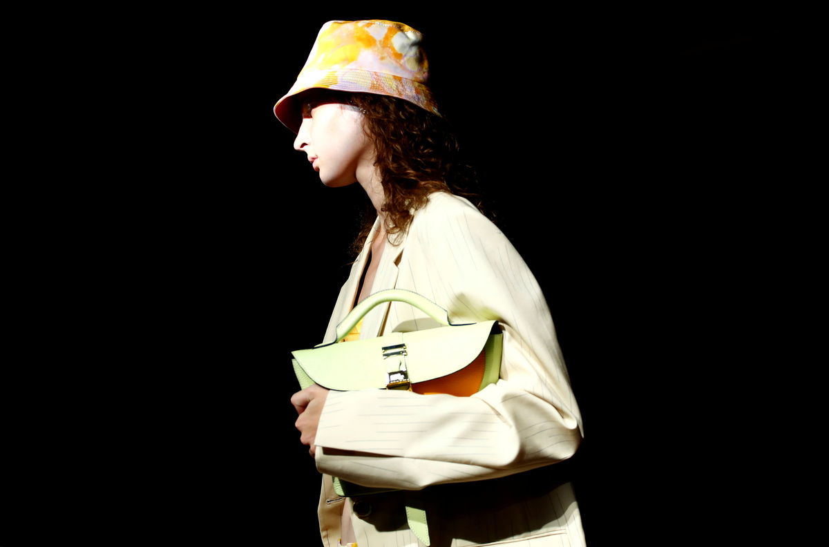 Heels, sandals, platforms, boots and flats as well as bonnet-like hats - colourful, golden or in snakeskin print - completed the looks with Prada's staple handbags.