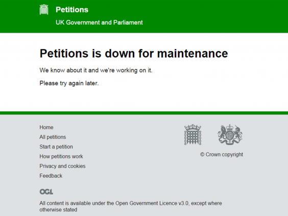 Shortly after the petition surpassed the required 100,000 votes, it appeared the government page crashed.