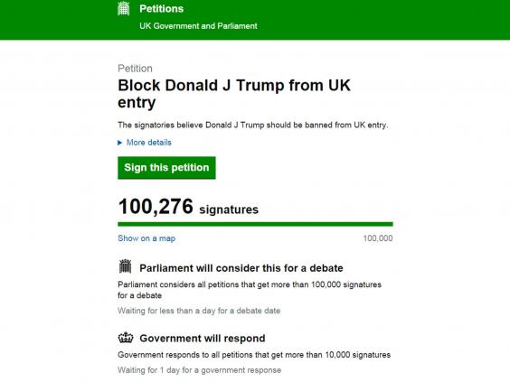 A petition calling for American presidential hopeful Donald Trump to be refused entry to the UK has passed 160,000 signatures in less than 24 hours, meaning the issue will be considered for debate in parliament.