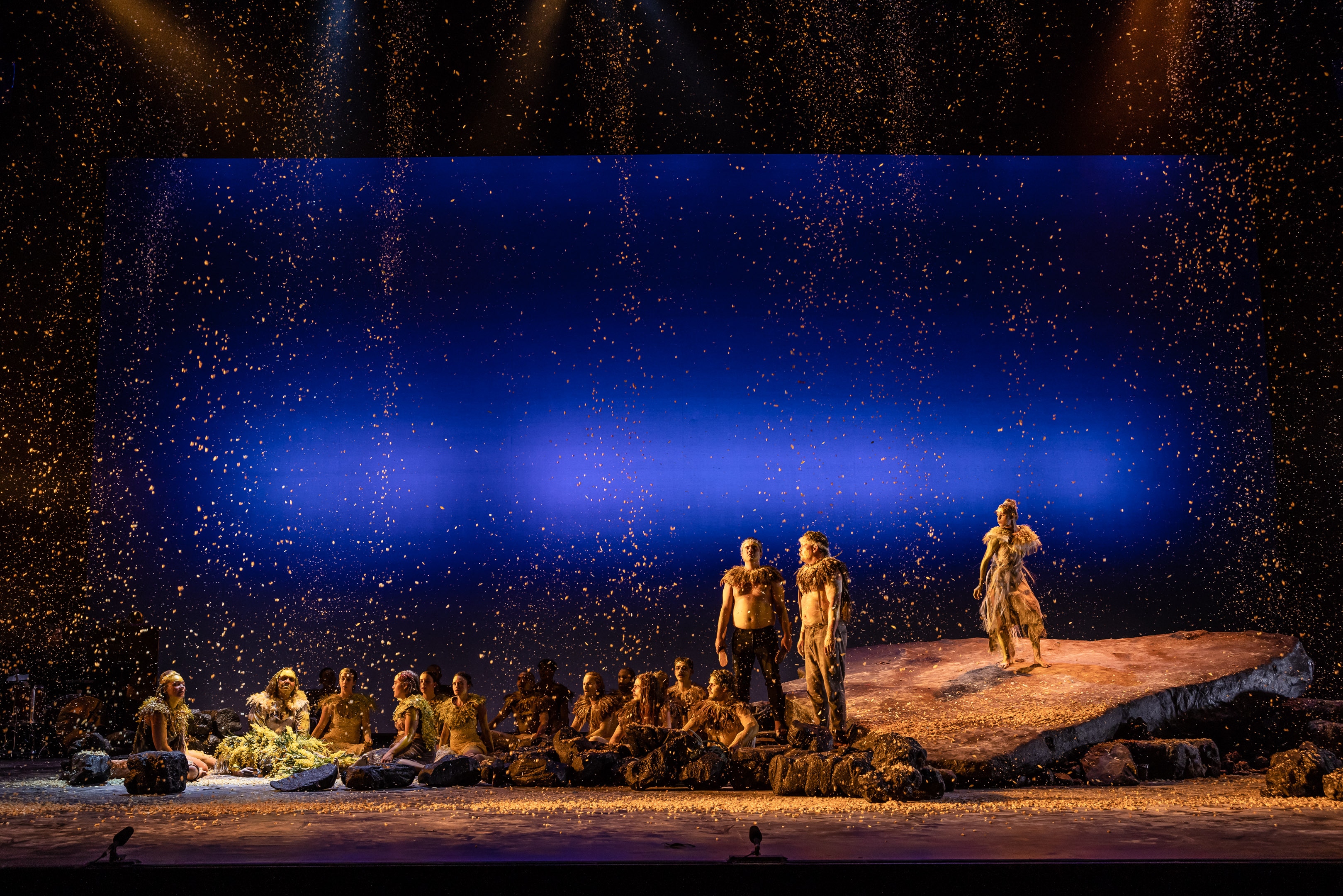 The result was a work about resilience, repatriation and language reclamation featuring five singer-actors, four musicians, and 17 Bangarra dancers.