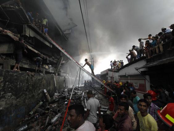 The fire in the Tongi industrial zone, about 12 miles from the capital of Dhaka, spread quickly due to flammable chemicals stored at the site.
