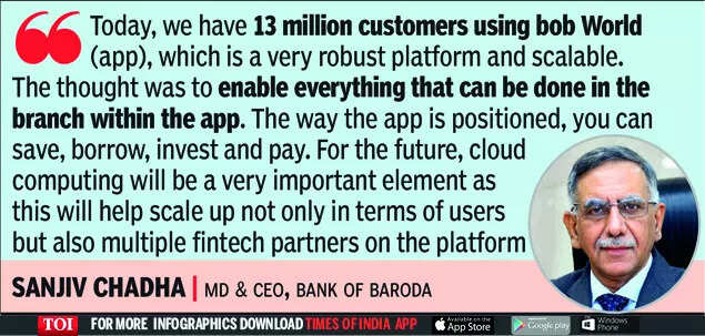 Bank of Baroda MD & CEO Sanjiv Chadha told TOI that post-pandemic, the bank has seen a surge in digital transactions and twice the number of branch visits are happening on the app.