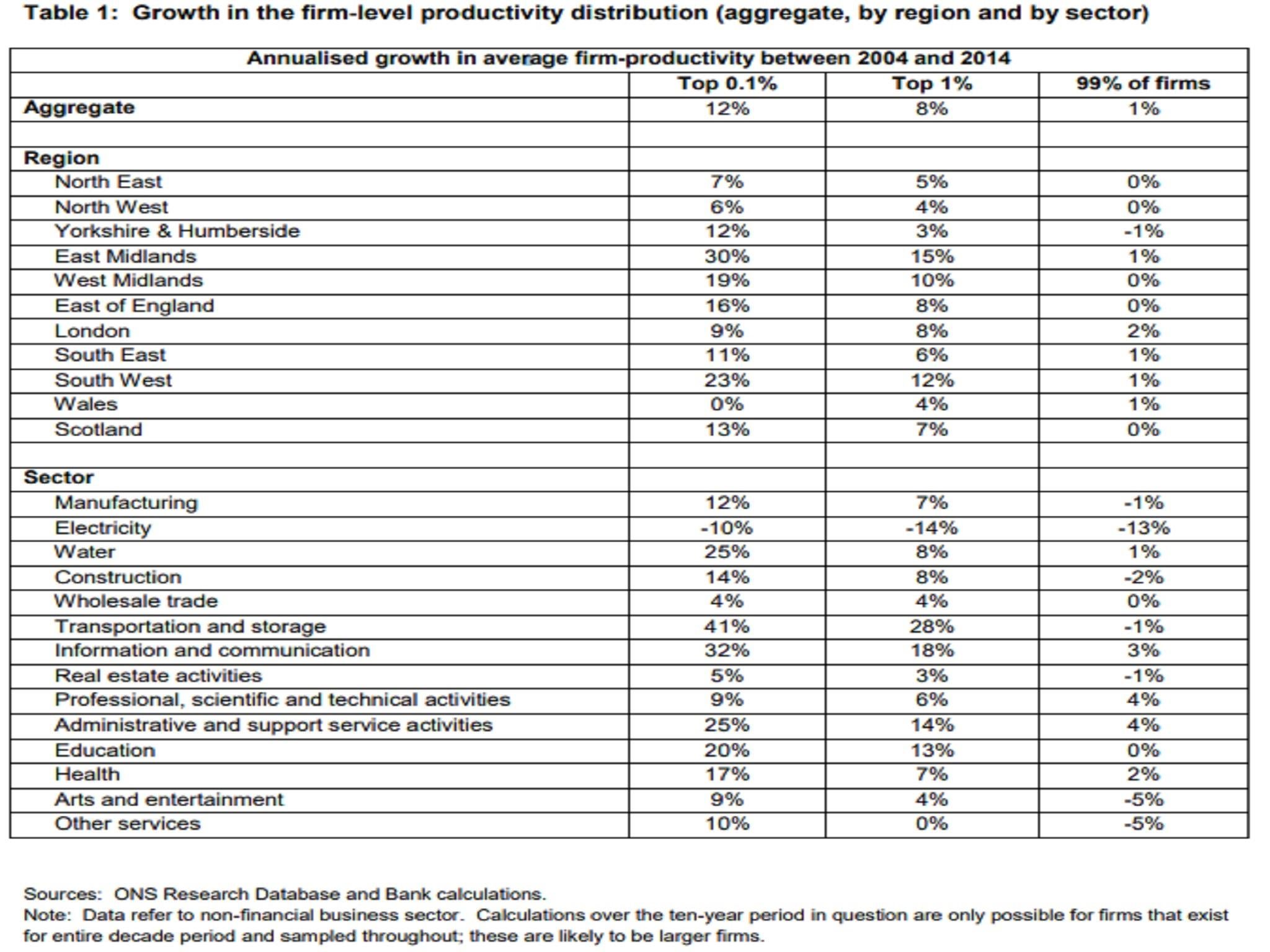 He showed that between 2004 and 2014 the average annual productivity growth of the bottom 99 per cent of the productivity distribution of firms was just 1 per cent.