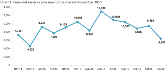 There were only 6,405 jobs available in finance in London in November, down from 9,500 in October.