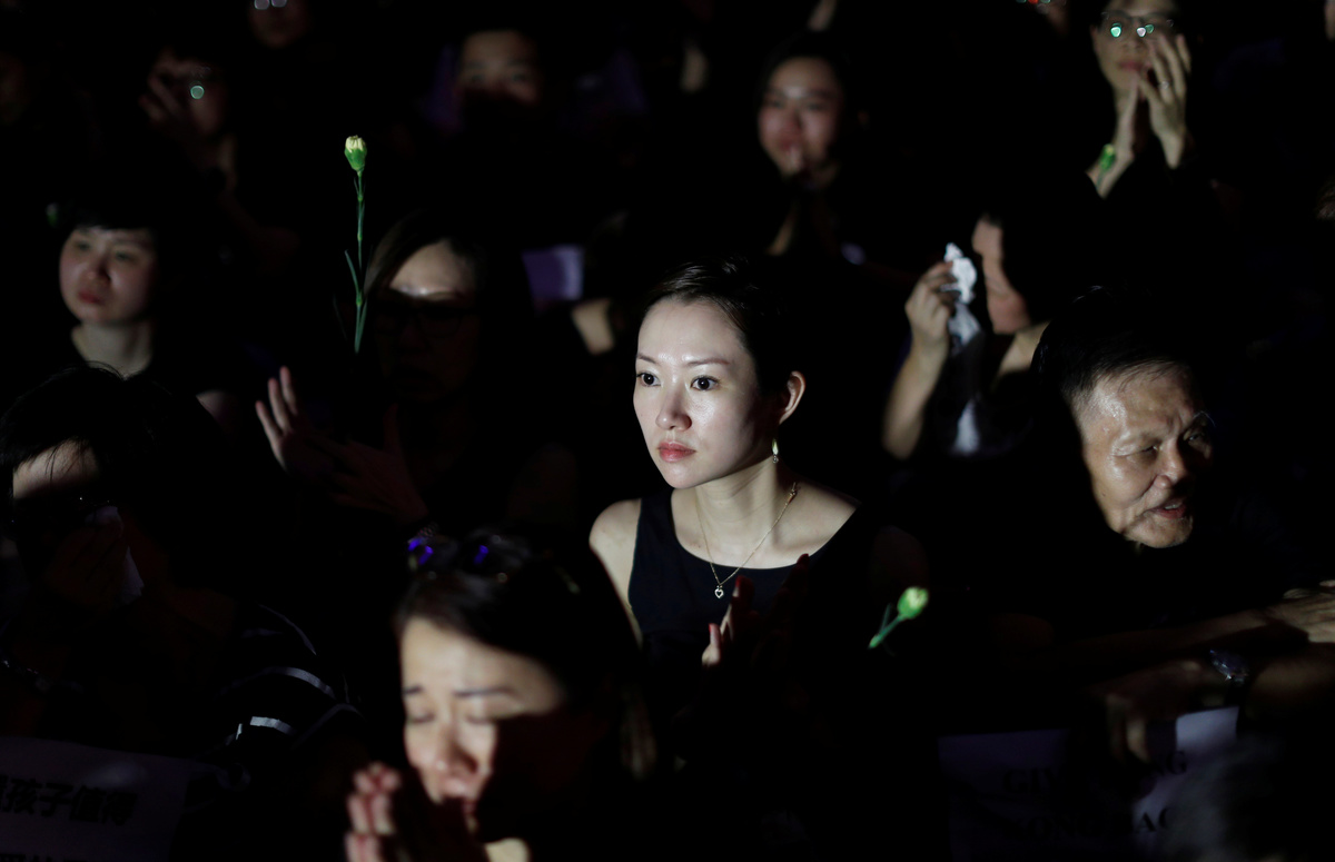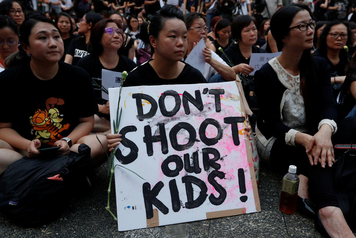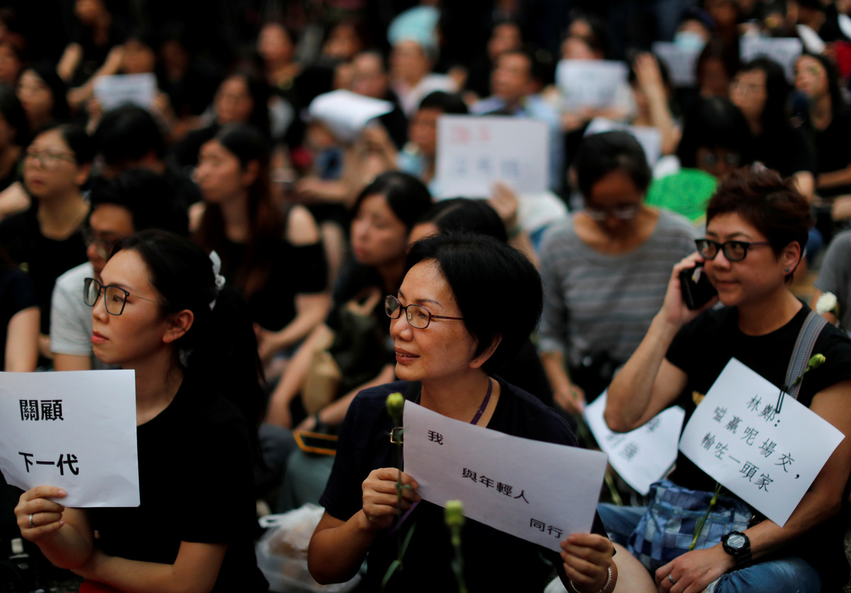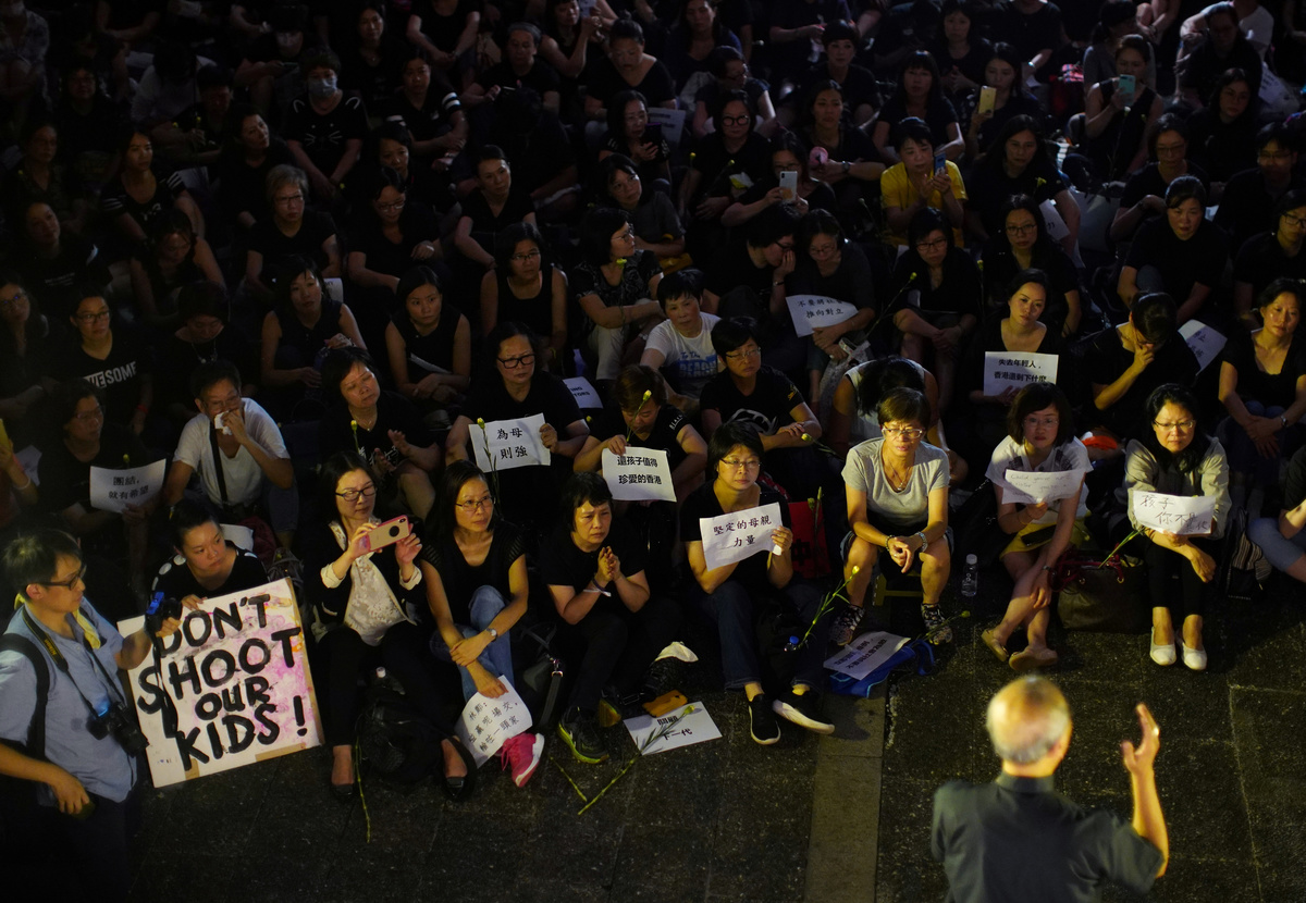 In the evening, hundreds of people loosely affiliated with a group that calls itself 'Hong Kong Mothers' assembled peacefully to show their opposition to the proposed legislation.