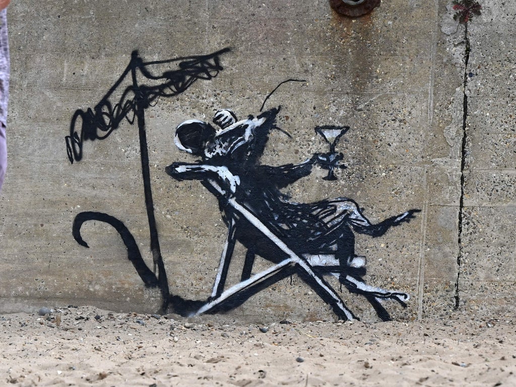 Another showed Banksy’s trademark rat reclining on a deck chair with a cocktail. It was spotted on a wall at North Beach.
