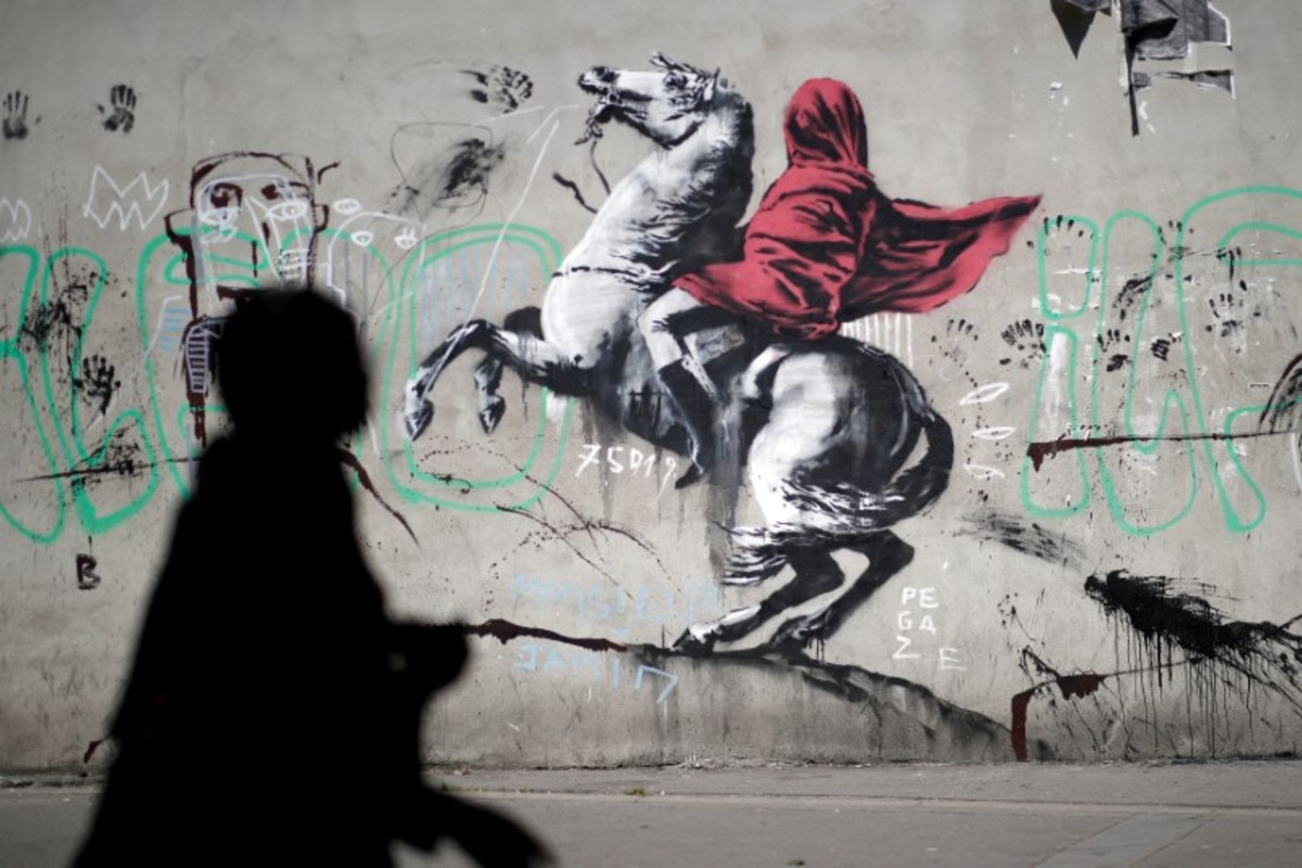 One mural, on a street in northern Paris where migrants often sleep rough, shows a black girl spray-painting pink wallpaper over a swastika. The painting has since been defaced to make it look like she is drawing the swastika herself.