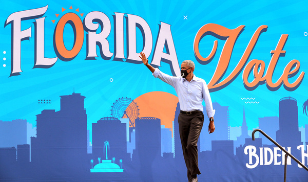 "He wants full credit for an economy that he inherited. He wants zero blame for the pandemic he ignored," Obama said in Orlando. "I just want to remind you," he went on, that "America created 1.5 million more jobs in the last three years of the Obama-Biden administration than in the first three years of the Trump-Pence administration. That's a fact. Look it up." (He's correct, according to Bureau of Labor Statistics data.)
