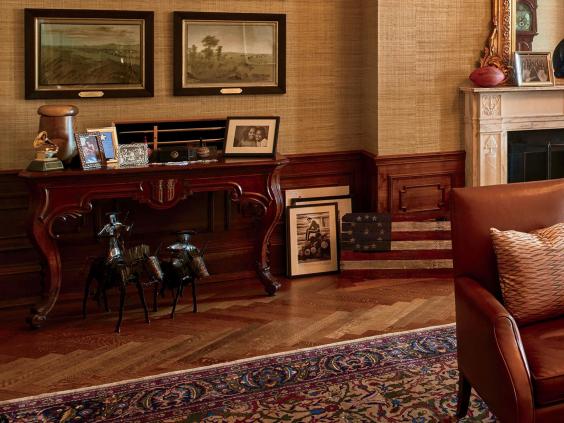 The Treaty Room is filled with memorabilia, from Obama family photos to a personalised football sitting on the mantelpiece with the president’s name on it to one of his two Grammy awards placed on a desk nearby. The room is where the president often retreats at night, and he uses its namestake table, which has been in the White House since 1869, as a desk.