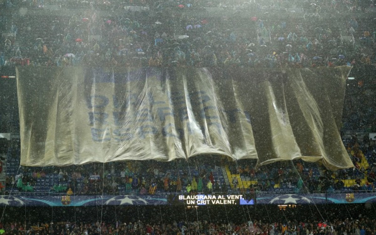 As the banner was unveiled on a rainswept evening at the Nou Camp, Barca fans chanted "freedom" in response to the jailing of senior secessionist figures Jordi Cuixart and Jordi Sanchez on Monday pending an investigation into alleged sedition.
