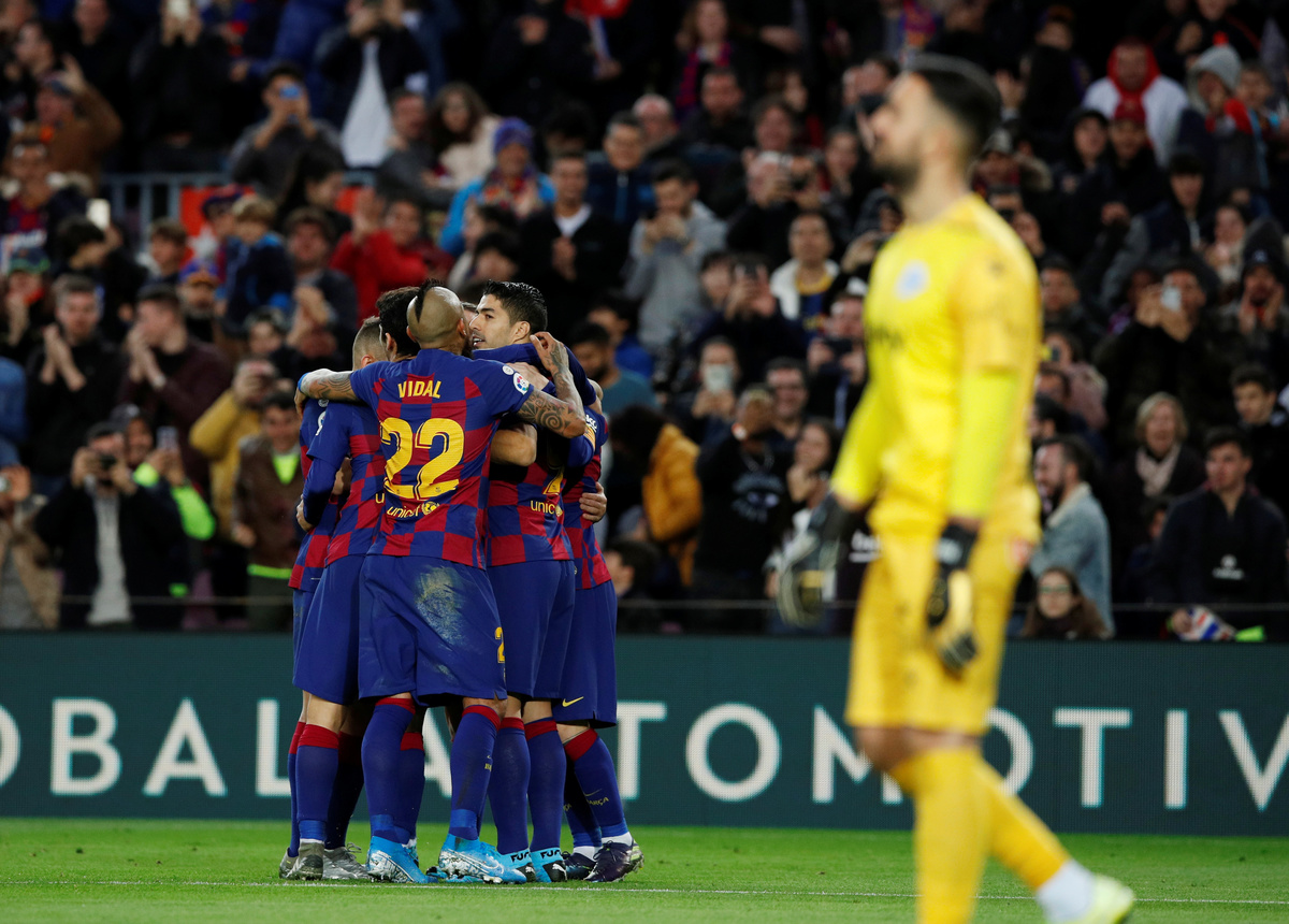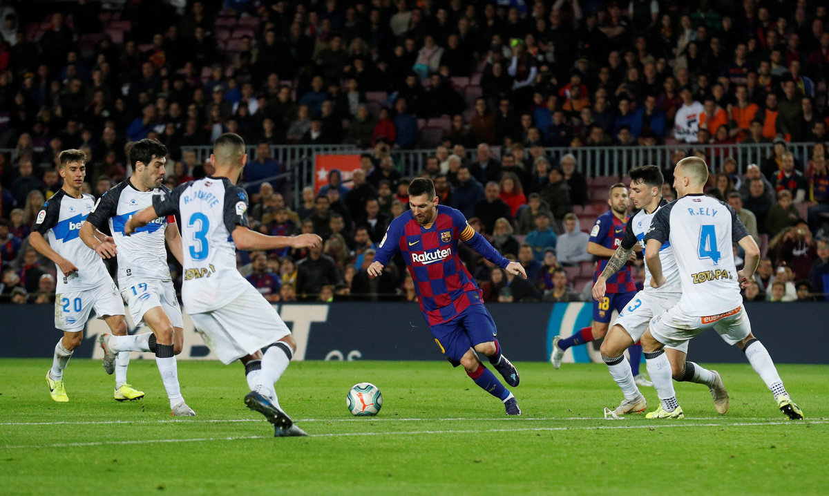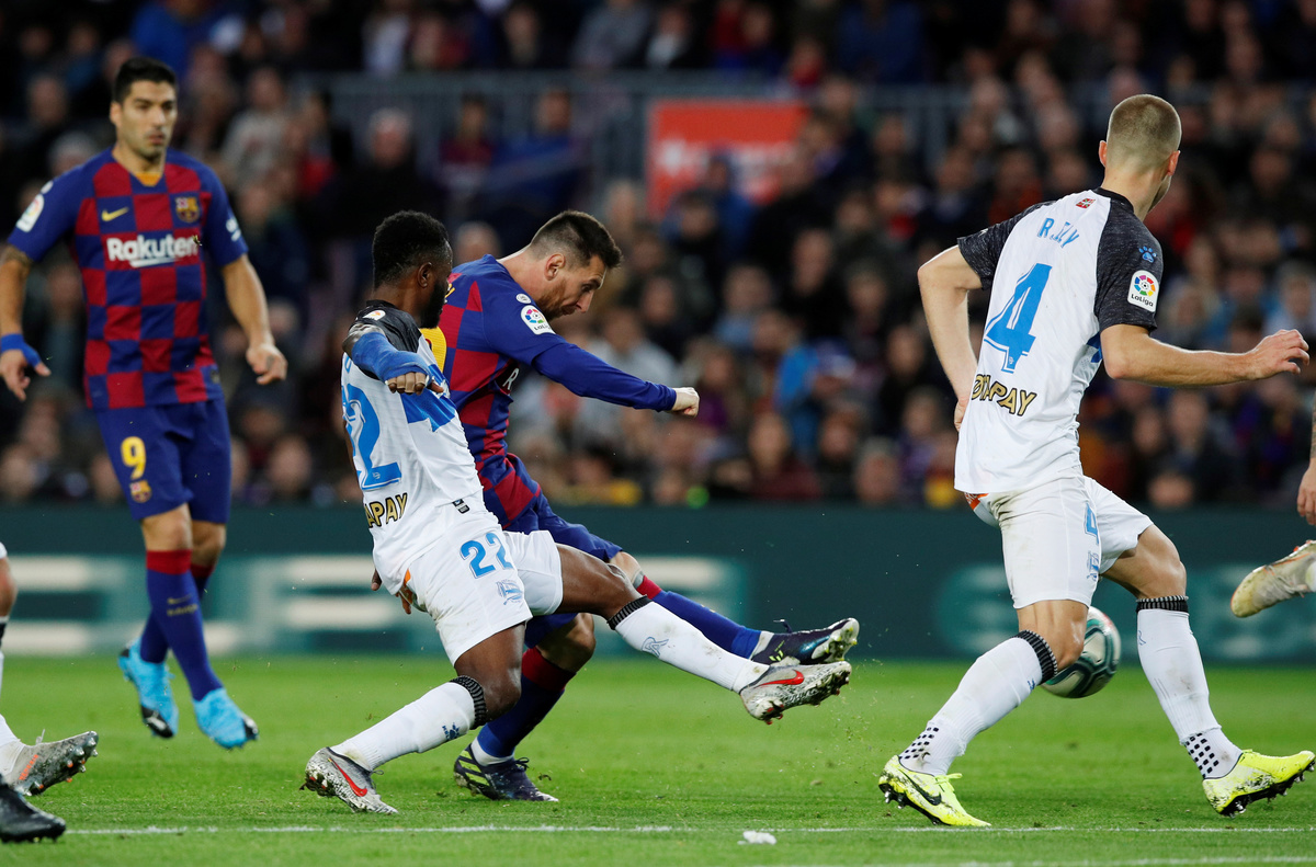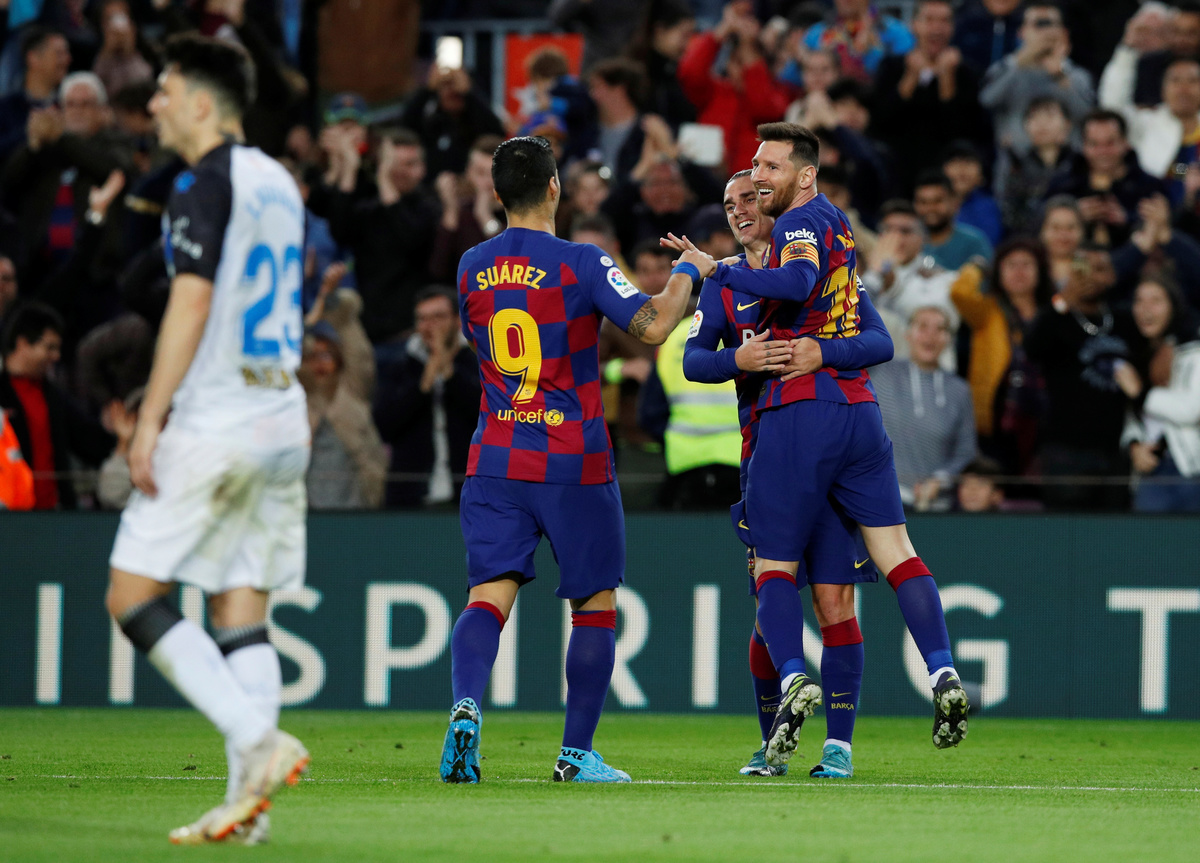 BARCELONA (Reuters) - Lionel Messi racked up 50 goals for the sixth year in a row while fellow forwards Luis Suarez and Antoine Griezmann were also on target as Barcelona turned on the style to beat Alaves 4-1 on Saturday and ensure they will end 2019 top of La Liga.