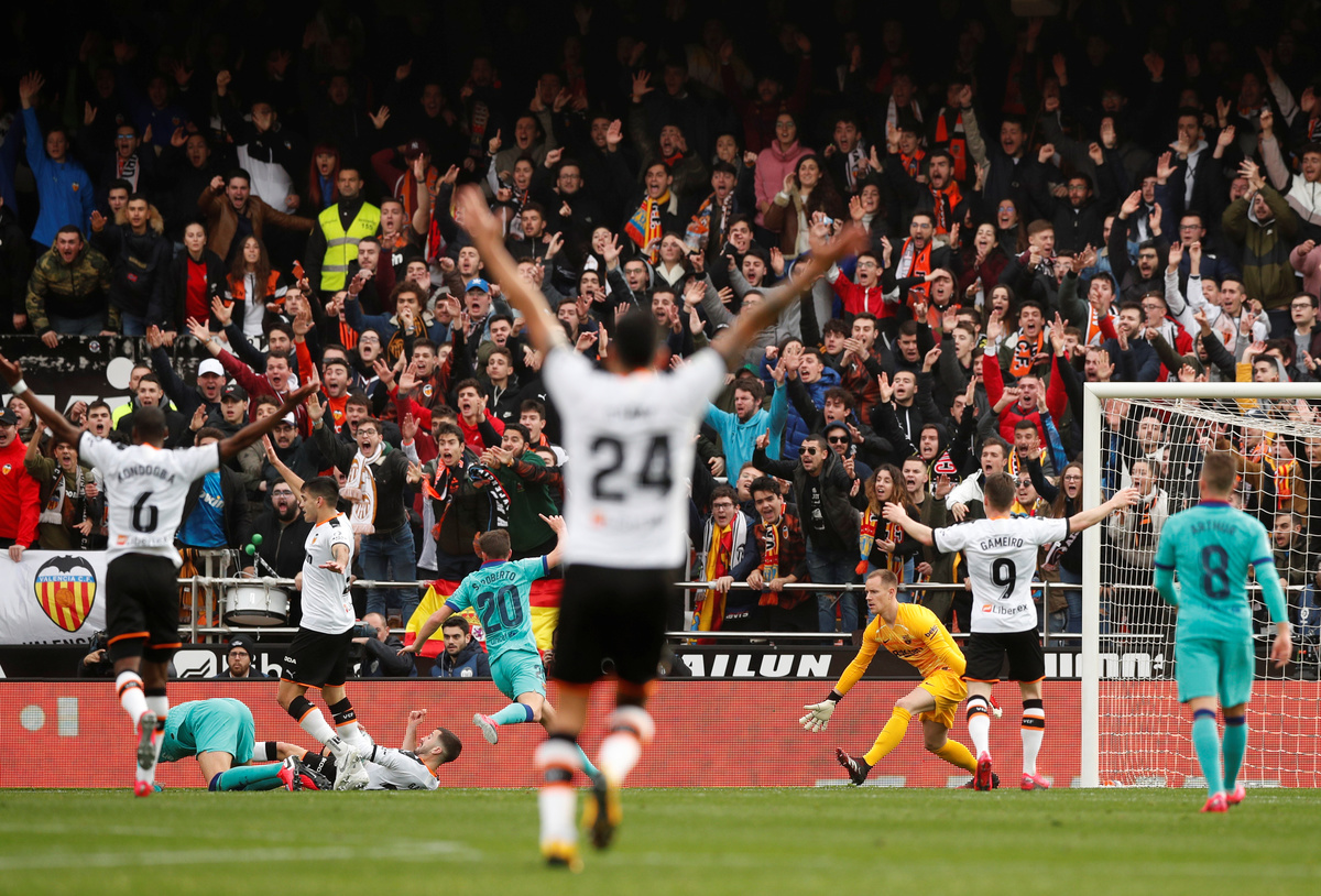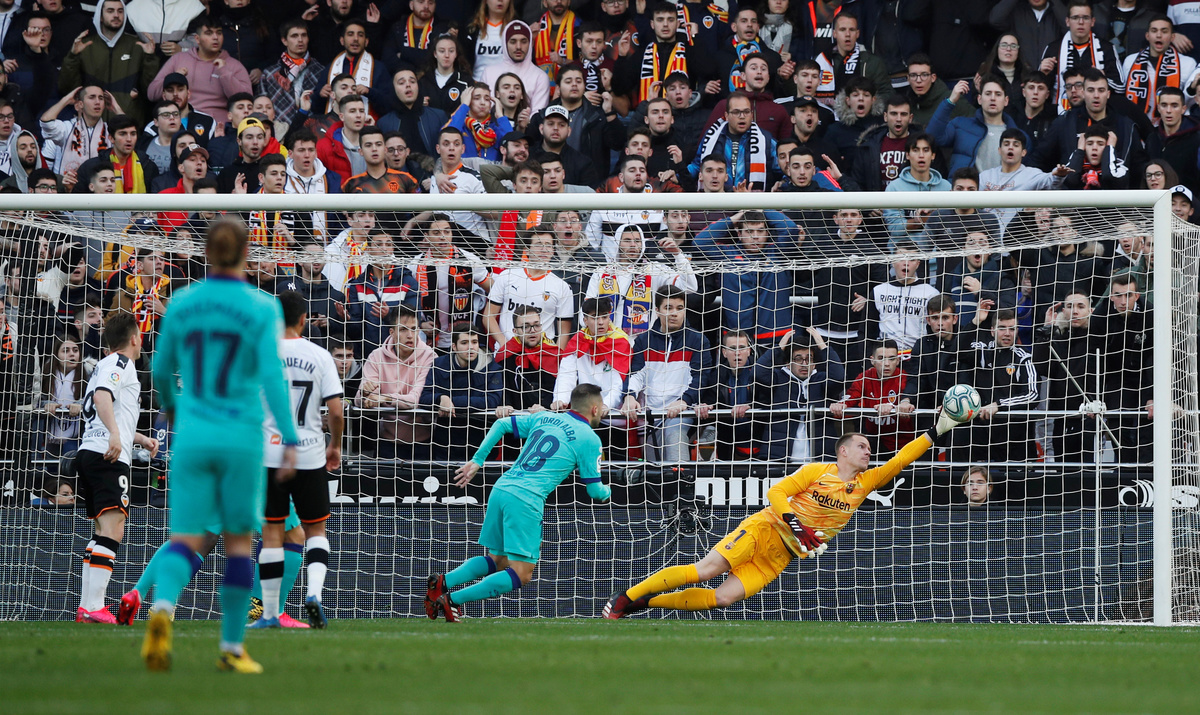 Barca dominated possession at Mestalla but Valencia controlled the game and might have thrashed the league leaders had it not been for some wonderful saves from goalkeeper Marc-Andre ter Stegen, who also kept out an early penalty from Gomez.