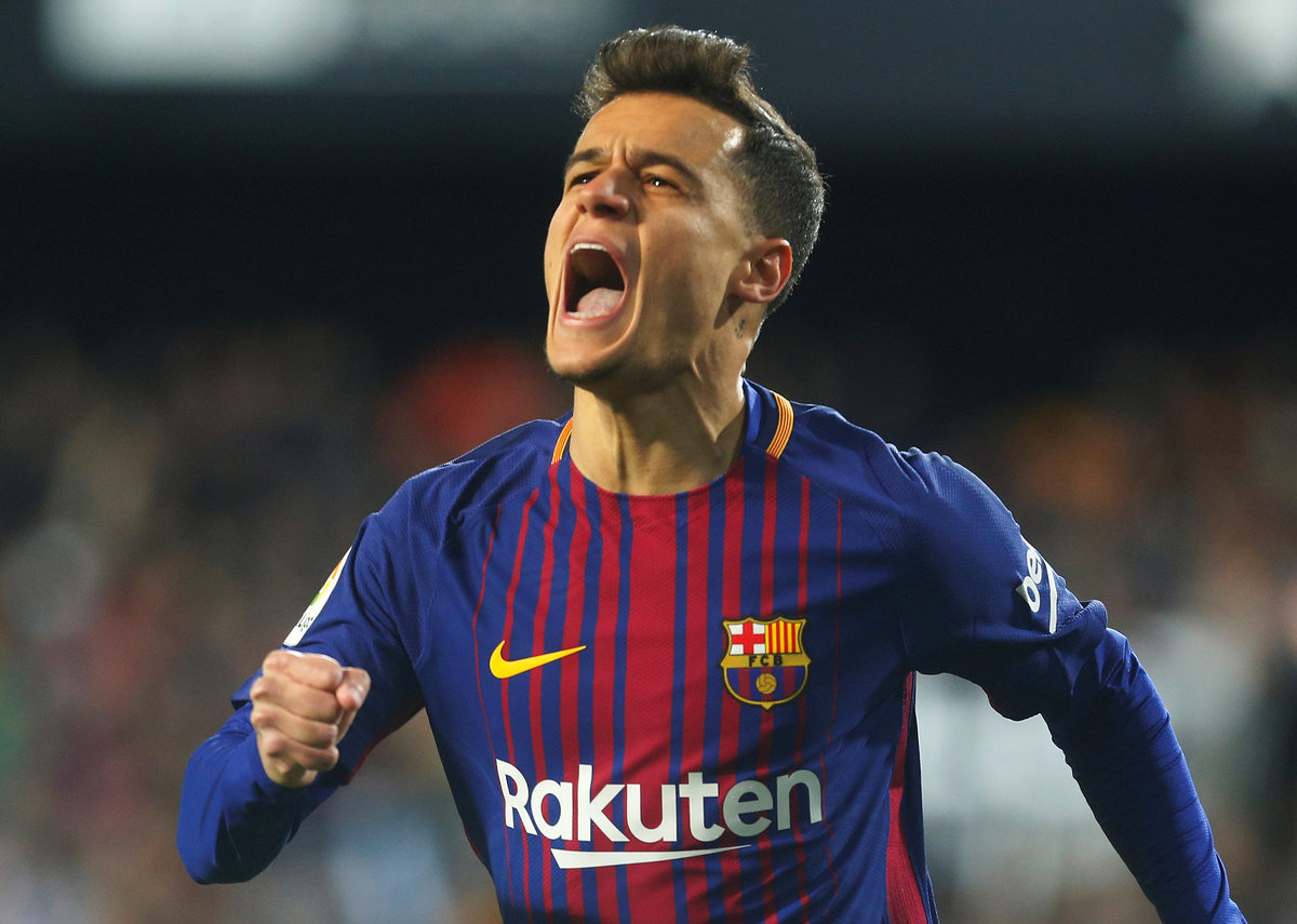Soccer Football - Spanish King's Cup Semi Final Second Leg - Valencia vs FC Barcelona - Mestalla, Valencia, Spain - February 8, 2018 Barcelona’s Philippe Coutinho celebrates scoring their first goal REUTERS/Heino Kalis