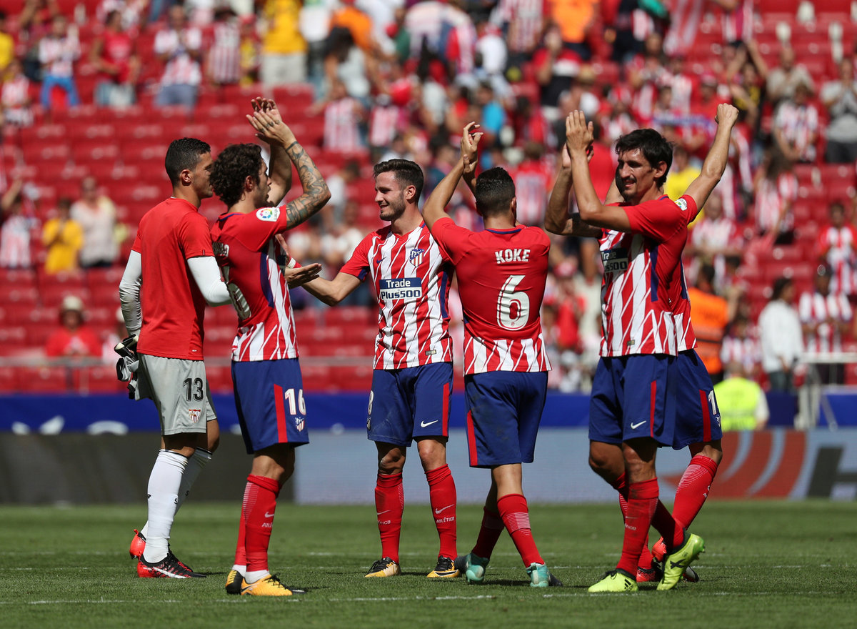 Second-half strikes from Yannick Carrasco and Antoine Griezmann helped Atletico to leapfrog Sevilla into second place. They remain unbeaten with four wins and two draws after six games.