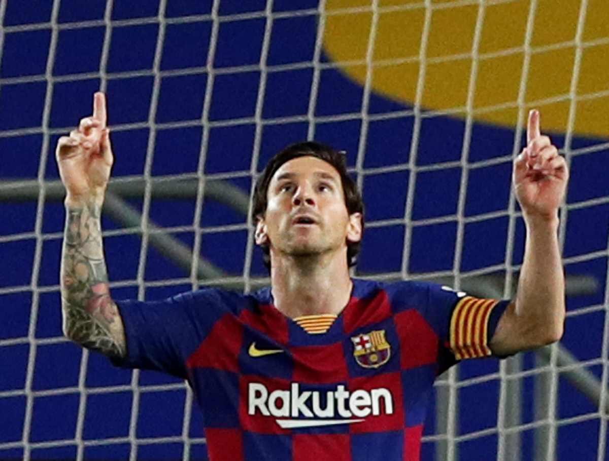 Soccer Football - La Liga Santander - FC Barcelona v Leganes - Camp Nou, Barcelona, Spain - June 16, 2020 Barcelona's Lionel Messi celebrates scoring their second goal, as play resumes behind closed doors following the outbreak of the coronavirus disease (COVID-19) REUTERS/Albert Gea