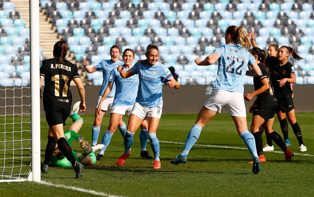 City came into the game with a 3-0 deficit after losing the away leg, played in Monza because of travel restrictions, but they began brightly and pulled back a goal when Janine Beckie prodded home in the 20th minute after Barca had failed to clear a corner.