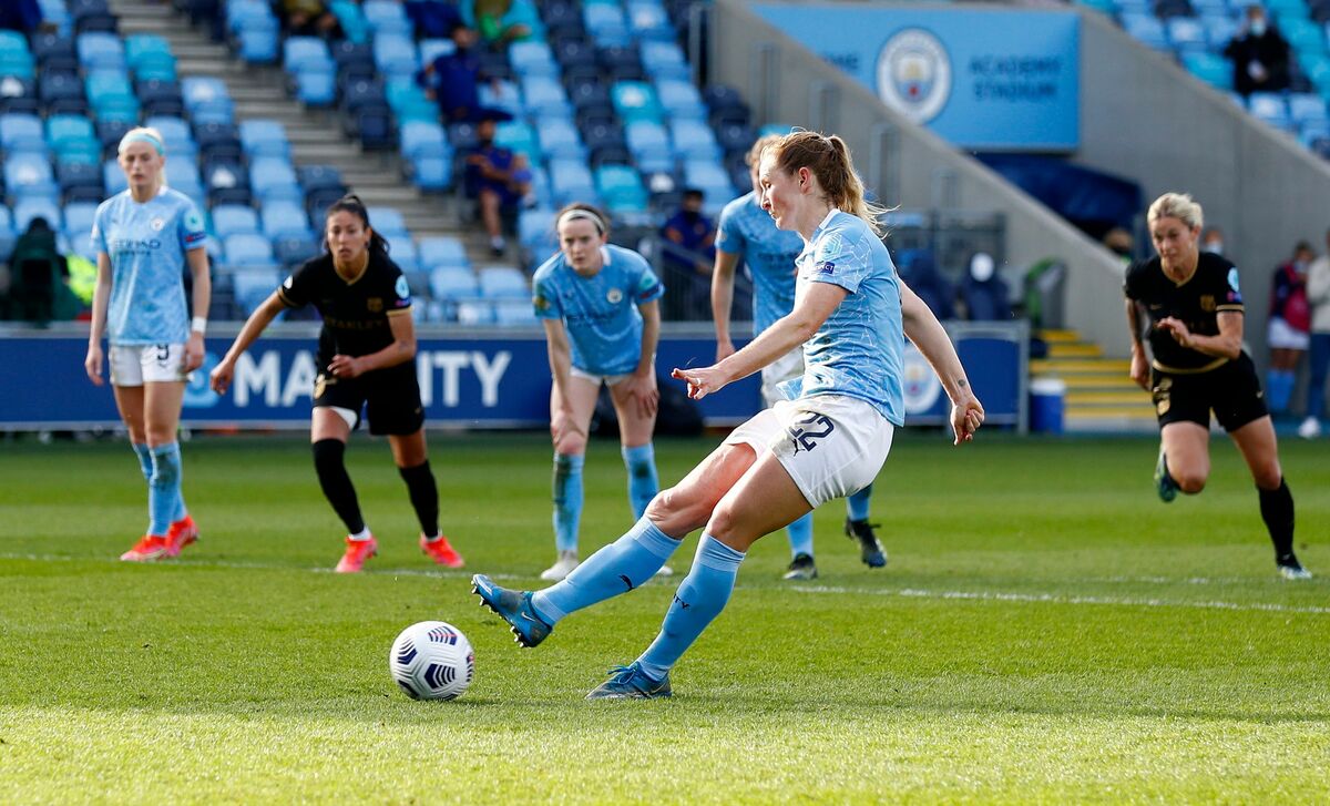 Asisat Oshoala levelled the score by slotting into an empty net in the 59th minute as Barcelona punished City for some poor defending. But City continued to push and Ellen White won a penalty that Sam Mewis converted to make it 2-1.