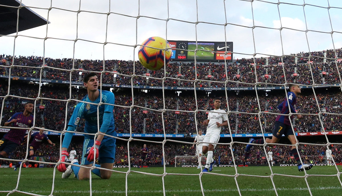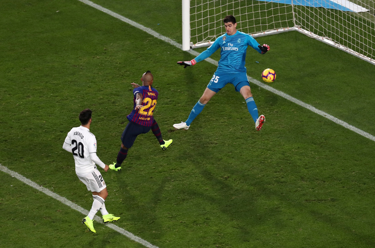 Further signs of Real's nervousness came when Nacho misplaced a pass in the area to the feet of Arthur Melo and it took a magnificent flying save from Thibaut Courtois to beat away the Brazilian's curling shot.