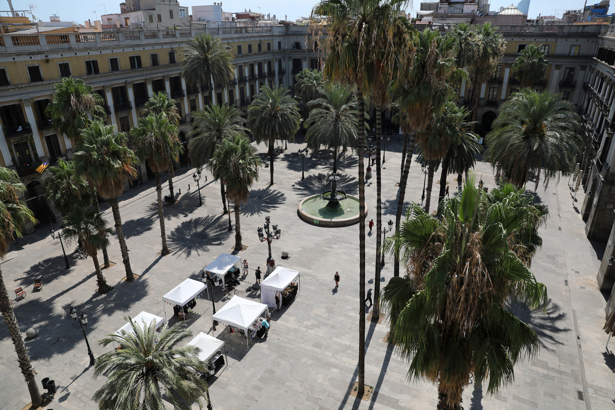 The sight of local kids playing under the palm trees in an almost empty Plaça Reial square reminds Gloria Gomez of her childhood in the 1980s before tourism swamped the Barcelona landmark.