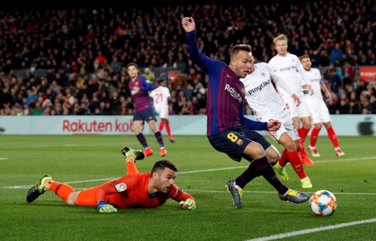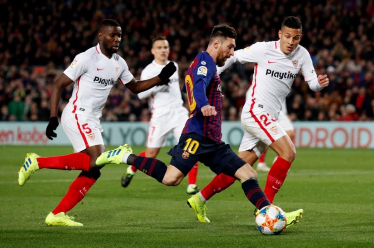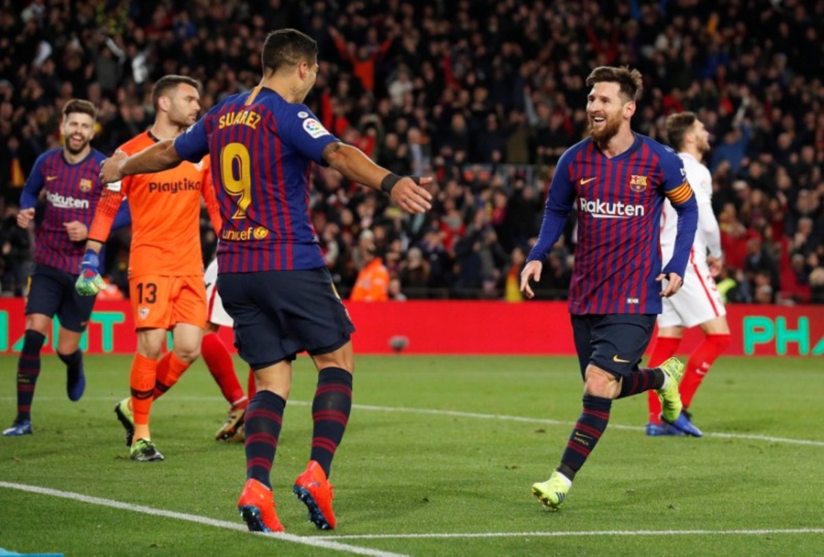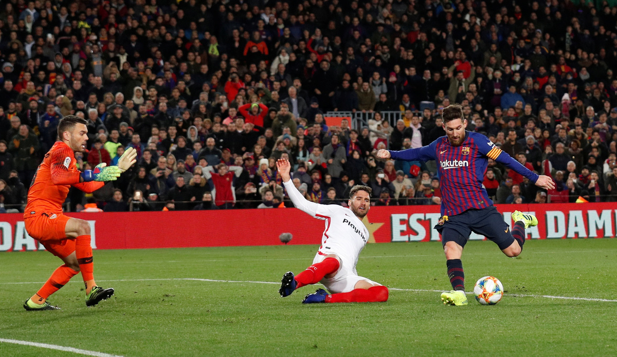 Soccer Football - Copa del Rey - Quarter-Final - Second Leg - FC Barcelona v Sevilla - Camp Nou, Barcelona, Spain - January 30, 2019 Barcelona's Lionel Messi in action REUTERS/Albert GeaSoccer Football - Copa del Rey - Quarter-Final - Second Leg - FC Barcelona v Sevilla - Camp Nou, Barcelona, Spain - January 30, 2019 Barcelona's Arturo Vidal applauds fans REUTERS/Albert GeaSoccer Football - Copa del Rey - Quarter-Final - Second Leg - FC Barcelona v Sevilla - Camp Nou, Barcelona, Spain - January 30, 2019 Barcelona's Luis Suarez celebrates scoring their fifth goal REUTERS/Albert GeaSoccer Football - Copa del Rey - Quarter-Final - Second Leg - FC Barcelona v Sevilla - Camp Nou, Barcelona, Spain - January 30, 2019 Barcelona's Arthur and Barcelona's Jasper Cillessen in action REUTERS/Albert GeaSoccer Football - Copa del Rey - Quarter-Final - Second Leg - FC Barcelona v Sevilla - Camp Nou, Barcelona, Spain - January 30, 2019 Barcelona's Jasper Cillessen saves a penalty from Sevilla's Ever Banega REUTERS/Albert GeaSoccer Football - Copa del Rey - Quarter-Final - Second Leg - FC Barcelona v Sevilla - Camp Nou, Barcelona, Spain - January 30, 2019 A banner is displayed during a minutes silence REUTERS/Albert GeaSoccer Football - Copa del Rey - Quarter-Final - Second Leg - FC Barcelona v Sevilla - Camp Nou, Barcelona, Spain - January 30, 2019 Sevilla coach Pablo Machin during the match REUTERS/Albert GeaSoccer Football - Copa del Rey - Quarter-Final - Second Leg - FC Barcelona v Sevilla - Camp Nou, Barcelona, Spain - January 30, 2019 Barcelona's Lionel Messi in action with Sevilla's Ibrahim Amadou and Guilherme Arana REUTERS/Albert Gea